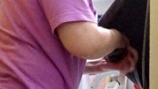 妻は杖を理学療法士さんに預けて,杖なし歩行に挑戦。転倒のリスクを避けるため,流し台に沿って歩く。(2021-08-28)