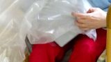 7月6日の訪問リハビリで作業療法士さんは,妻が左右の指を交差して両手を合せられるようになったことを確認。ベッド端に座った妻に,左右の指を交差して握った両手を上下に動かしたり,身体の前・横・後に置いた丸めたタオルをターゲットとして握った両手を移動(リーチ)するリハビリを実施すると共に,同様の自主トレを行うことを指示していた。(2023-07-06)