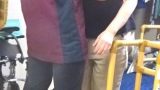 近くの歩道橋に人が集まってきているが,この歩道橋はかなり老朽化しているので,あまり大きな荷重がかかると変形しそう。