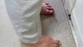 妻が左手を耳に当てて外から聞こえてくるセミの声を確認している。近所では午前8時頃にクマゼミが鳴きだすことが多いので,ちょうど朝の歩行自主トレの最中にそれを確認している。(2025-07-15)